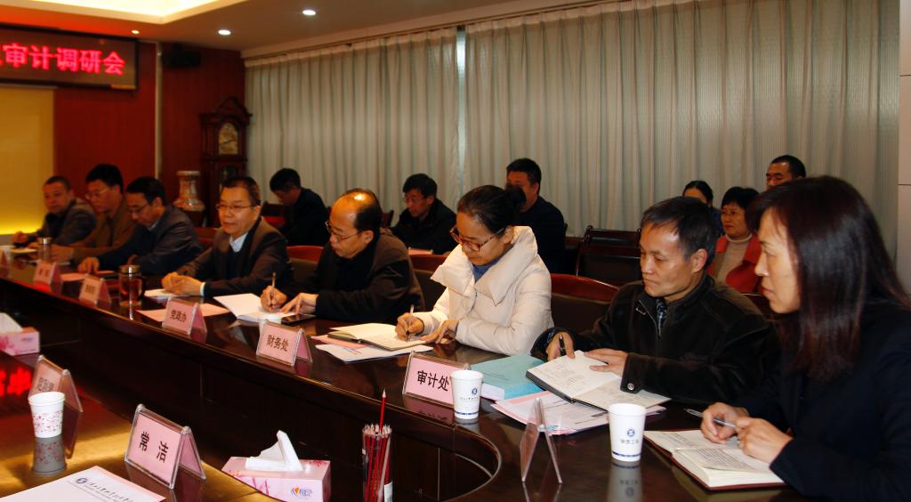 11月19日上午,由省教育厅审计处处长杨盛涛担任组长的高校内部控制审计组一行七人对我院内部控制情况进行就地审计,并在崇文南楼第一会议室就内部控制管理工作进行调研座谈。党委书记惠朝阳、纪委书记康强、学院财务处、党政办、国资处、后勤处、基建处等部门负责人及审计处工作人员参加了座谈会。会议由纪委书记康强主持。