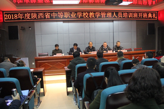 11月30日,2018年度陕西省中等职业学校教学管理人员培训班开班典礼在我院笃学B一楼报告厅举行。学院副院长梅创社,继续教育中心主任韩伟、副主任付胜利,教务处副处长刘军旭,授课教师代表及全体学员出席了典礼。开班典礼由继续教育中心主任韩伟主持。