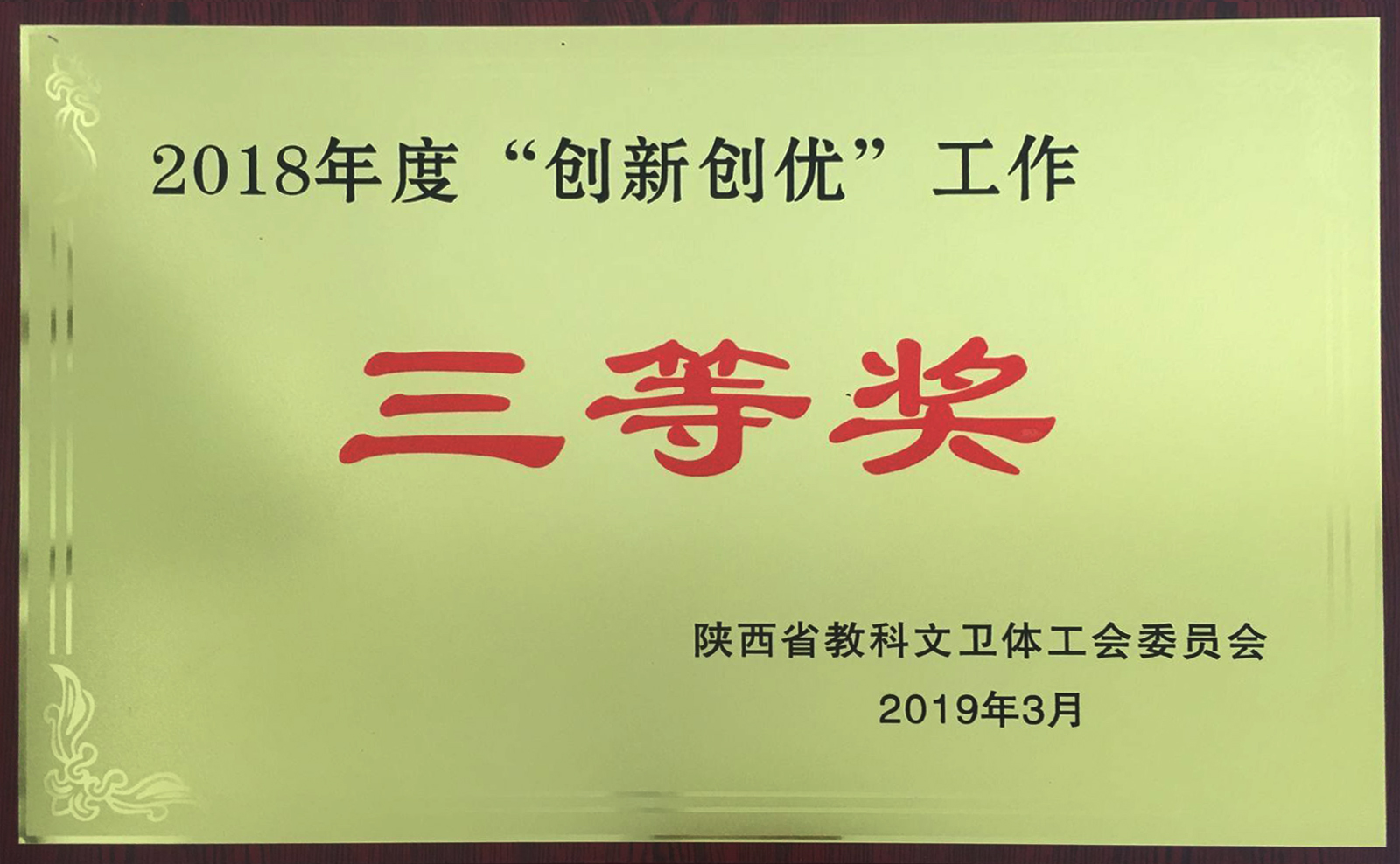 3月27日,省教科文卫体工会召开一届四次全委会,会议对全省教科文卫体系统2018年度工作创新创优成果进行了通报表彰(陕教科文卫体工字〔2018〕35号)。我院工会开展的“‘相约金秋·幸福相伴’咸阳地区高校青年教师联谊活动”荣获三等奖,这是陕西省教科文卫体工会首次表彰全省教科文卫体系统创新创优工作,也是我院工会首度获此殊荣,全省仅有两所高职院校获得表彰。