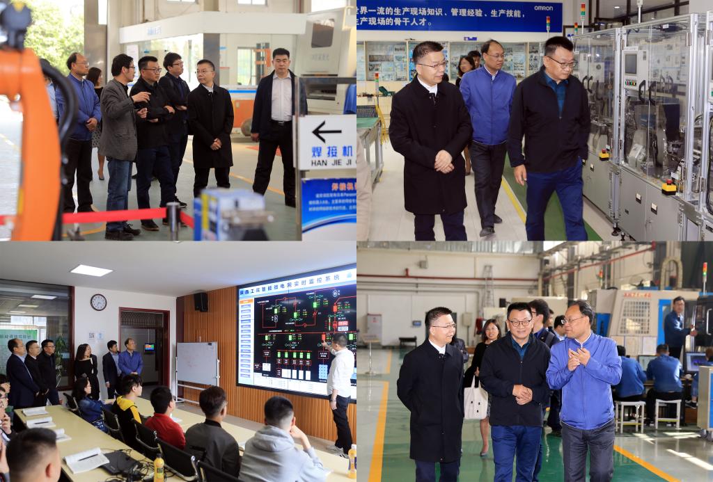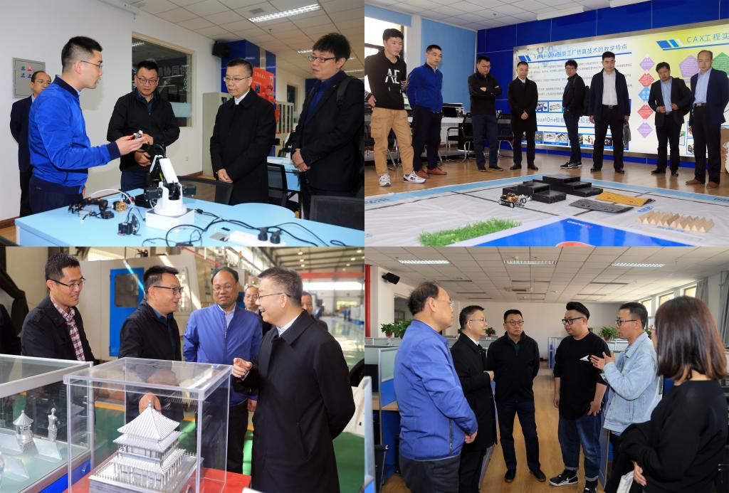 座谈开始前,胡建波董事长一行在学院领导惠朝阳、刘清陪同下实地参观了我院智能制造协同创新中心、汽车工程与服务技术实训中心、机加工技术训练中心、建筑工程技术实训中心、焊接技术实训中心、工业自动化技术实训中心和智能微电网实训室等地。