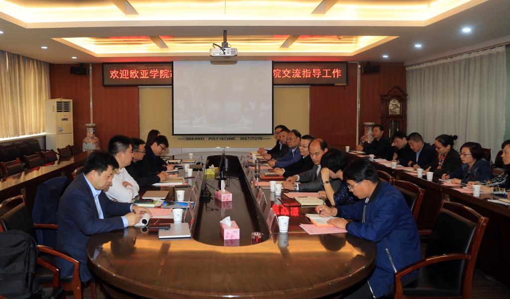 4月11日下午,西安欧亚学院董事长胡建波与该校副校长李正、校长助理赵军境、基建处处长雷春妮、图文信息中心副主任罗征一行应邀来我院交流指导新校区建设工作。我院党委书记惠朝阳,副院长梅创社、刘清和工会主席刘文青、基建处处长张勃、教务处副处长刘军旭等相关部门负责同志在崇文南楼第一会议室与来宾进行了座谈交流。