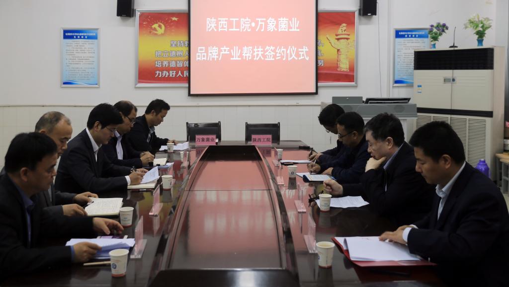 在双方领导的共同见证下,李选芒与陈森代表校企双方签订《陕西工院万象菌业品牌产业帮扶协议》。