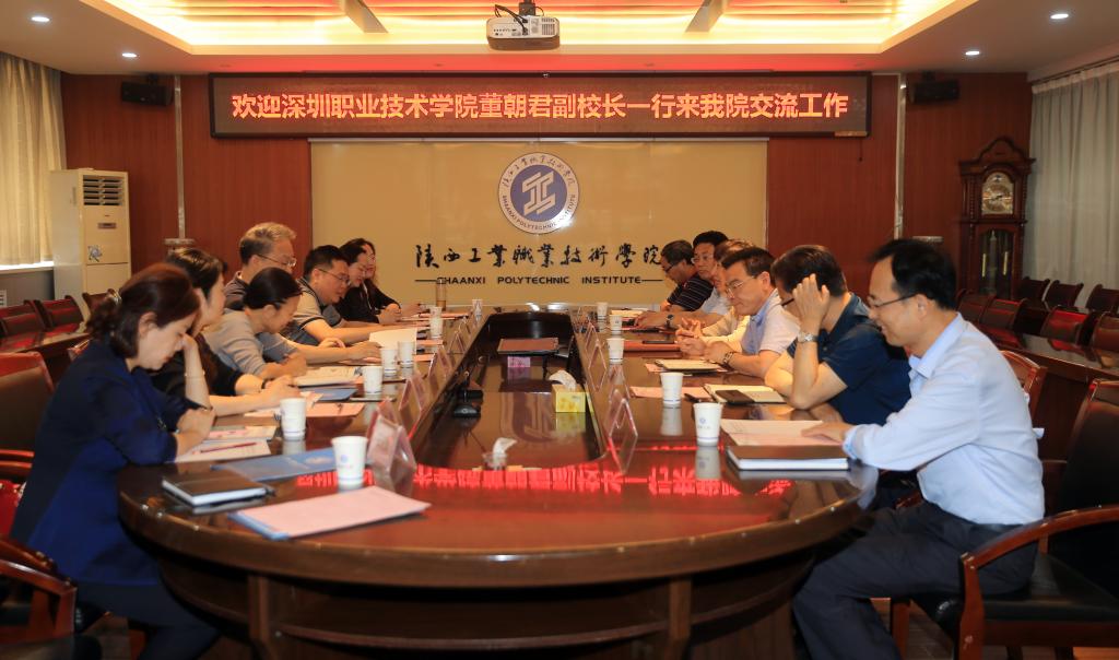 5月23日上午,深圳职业技术学院董朝君副校长一行8人来我院交流工作,学院院长张晓云和学生处、机械工程学院、数控工程学院、土木工程学院、工商管理学院的党总支书记等在崇文楼九楼第一会议室进行了交流座谈,座谈会由党委副书记、副院长刘永亮同志主持。