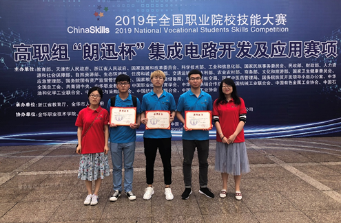 6月11日-13日,2019年全国职业院校技能大赛“集成电路开发与应用赛项”在金华职业技术学院举行,由电气工程学院教师杜晓岚、罗瑜指导,过控1701王军、过控1701白晨阳、电子1701王鑫三位同学组成的代表队荣获团体二等奖第一名。