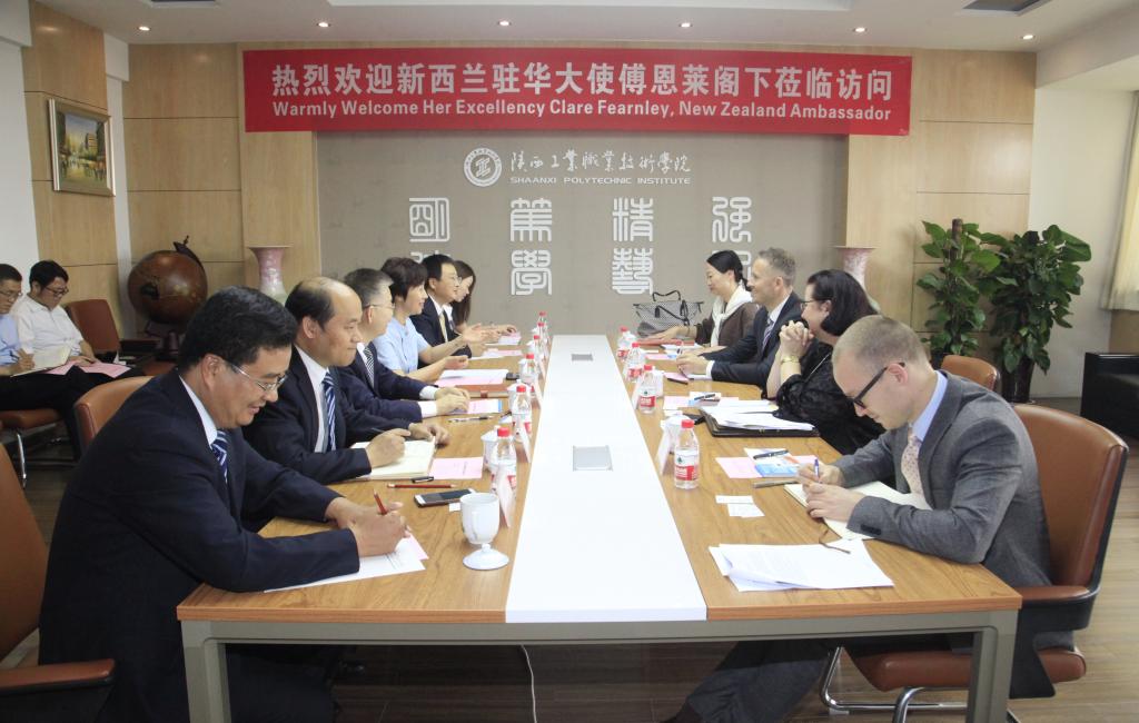 傅恩莱大使对惠朝阳书记、张晓云院长的热情接待表示衷心感谢。在介绍了近年来中国和新西兰在教育交流方面的情况后,她表示,新西兰政府高度重视与中国的教育交流合作,特别是职业教育领域的合作,两国政府于2013年设立的中国-新西兰职业教育示范项目经过两国职教界的务实合作,取得了了不起的成绩。她对我院与新西兰怀卡托理工学院开展的合作项目给予了高度评价,并对两国教育部门将示范项目教师培训基地设立在我院,并在今年5月在西安的丝绸之路教育博览会上举行揭牌仪式表示祝贺。她对示范项目教师培训基地将要实施的系列合作项目表示赞赏,并表示,新西兰驻华使馆将积极为我院与新西兰职业院校的交流合作牵线搭桥,提供最大的支持和帮助。