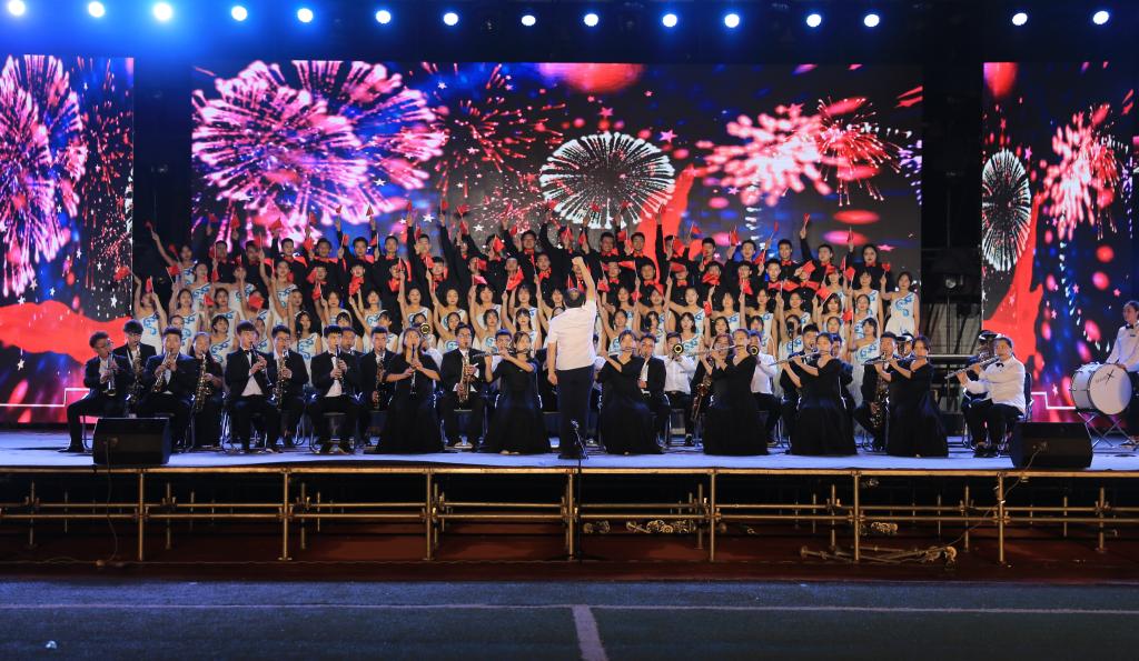 秋风送爽,丹桂飘香。9月11日晚,我院田径运动场上灯光璀璨、歌声飞扬。为欢迎2019级新同学,由党委学生工作部、美育部主办,大学生艺术团承办的陕西工业职业技术学院庆祝中华人民共和国成立70周年暨2019年“筑梦青春 祝福祖国”迎新文艺晚会在这里举行,学院领导惠朝阳、张晓云、康强、贺天柱、田昊、梅创社以及各部门负责同志与2019级7700余名新生共同欣赏了这场视听盛宴。
