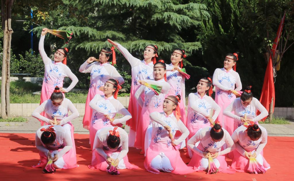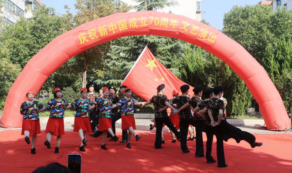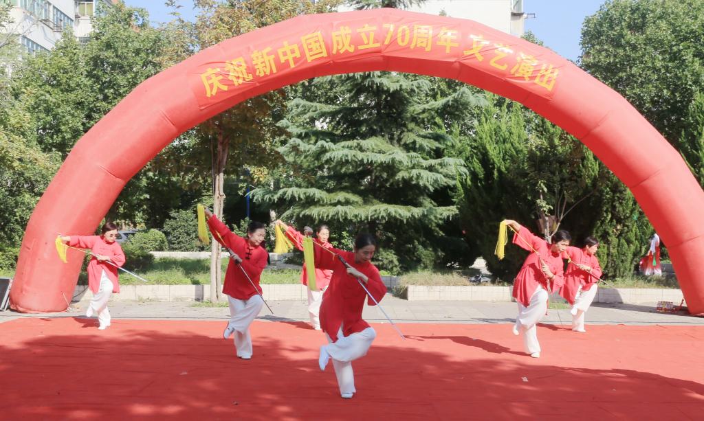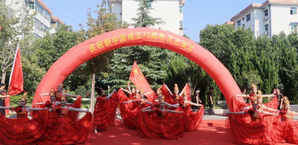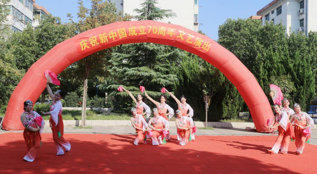 文艺演出以广场舞《我爱我的祖国》开始,演出节目形式多样、丰富多彩,有柔力球表演《母亲是中华》、《坐上动车去拉萨》;太极表演《武当太极剑》、《木兰英姿长穗剑》;舞蹈《青春永恒》、《我和我的祖国》;时装表演《祝福祖国》;水兵舞《再唱山歌给党听》;小合唱《谁不说俺家乡好》、《天边》等。最后,文艺演出在秦腔表演《梁秋燕》、《光辉照儿永向前》中落下帷幕。精彩演出赢得了场下一阵阵热烈的掌声。