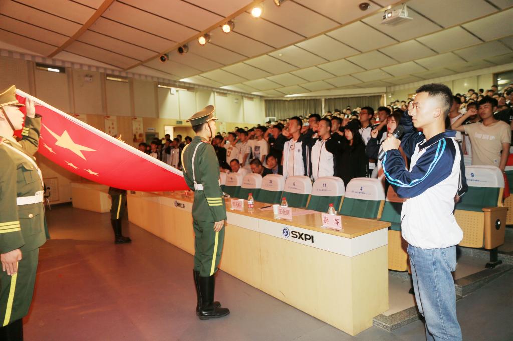 随后,在全国职业院校技能大赛“嵌入式技术应用开发”赛项一等奖获得者电气工程学院李慧峰同学的领誓下,全体学生用嘹亮的声音向祖国深情告白。