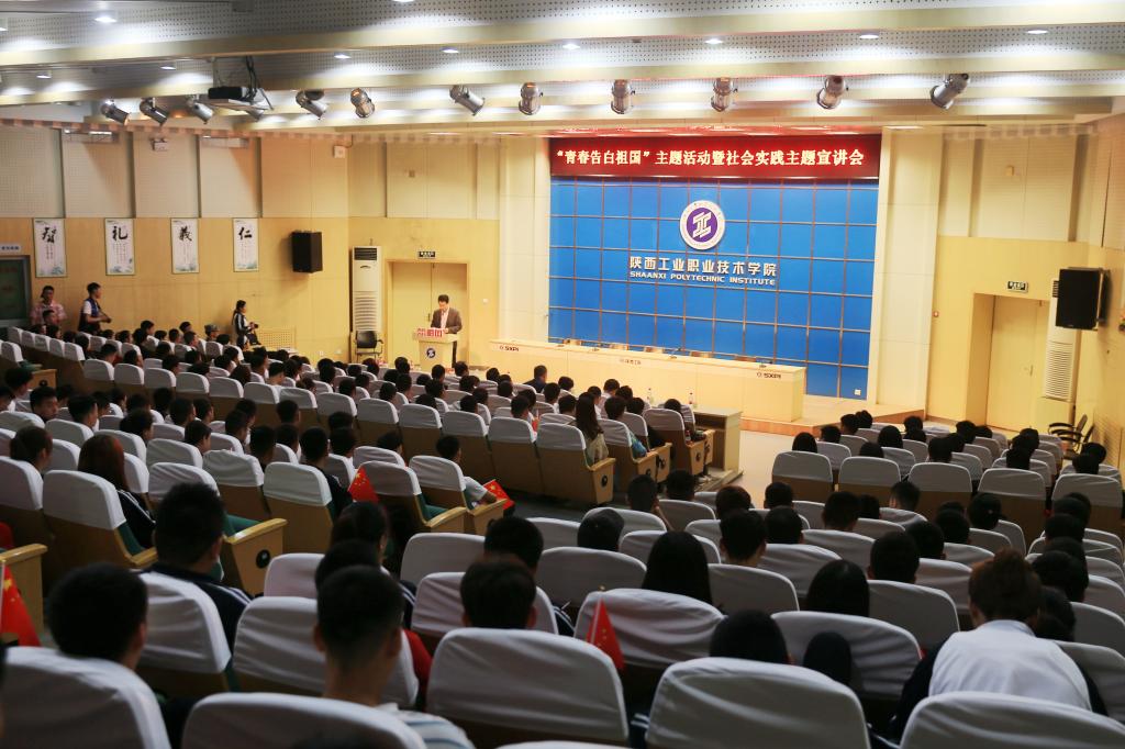 9月26日下午,我院“青春告白祖国”主题活动暨社会实践宣讲会在学术会堂举办。学院党委副书记贺天柱、学工部部长郝军、马克思主义学院院长王金辉、各二级学院党总支书记、学工办主任、团总支书记及学生代表400余人参加了活动。