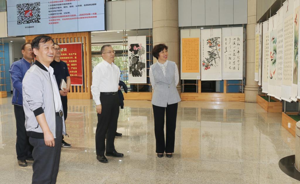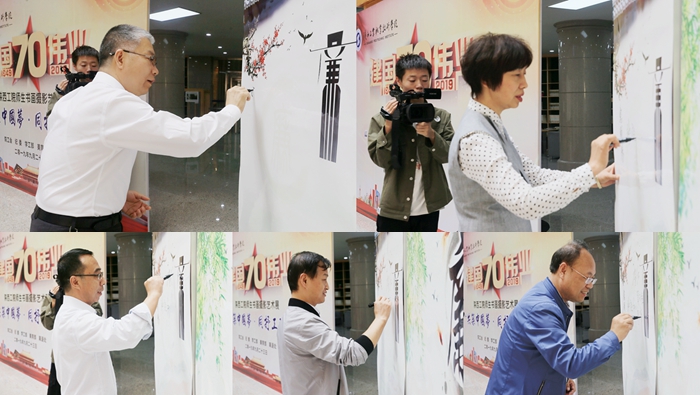 9月23日上午,学院庆祝中华人民共和国成立70周年“共筑中国梦·同抒工院情”——师生书画摄影艺术展在图书馆一楼教师发展中心开幕。全院师生以生动的笔墨和光影色彩艺术,为新祖国70华诞献上贺礼。学院领导惠朝阳、张晓云、康强、贺天柱、刘清,党委中心组成员莅临现场观赏了展出,并签名留念。