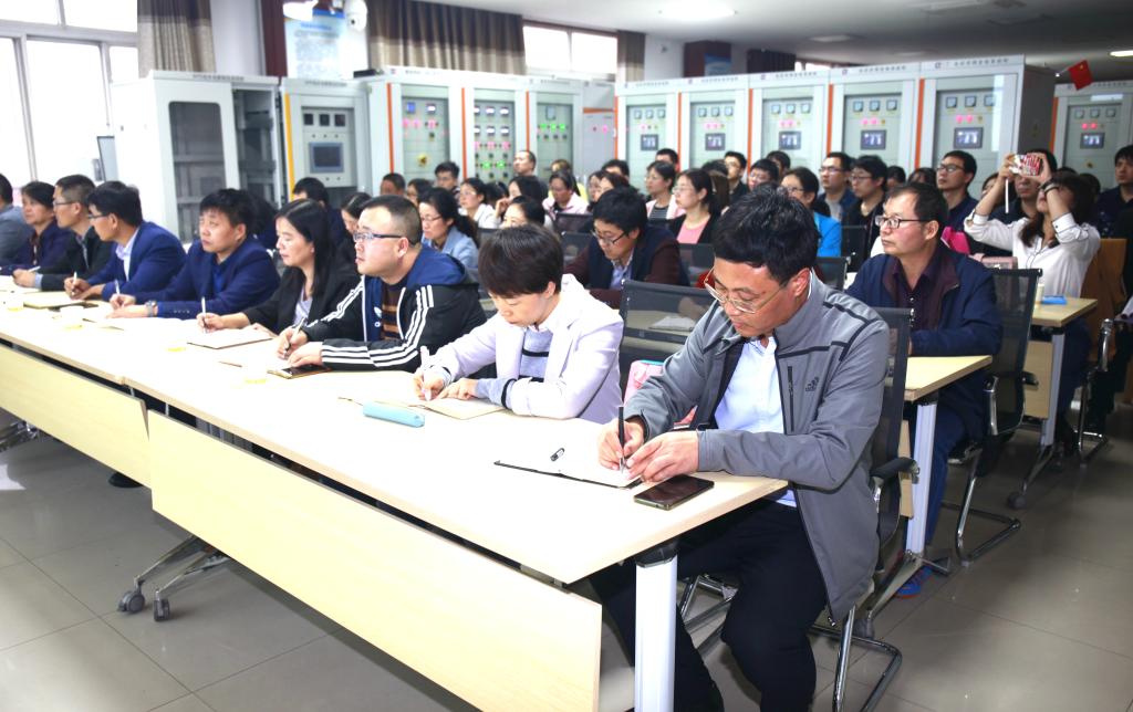 10月10日下午,结合“不忘初心、牢记使命”主题教育,党委副书记、副院长刘永亮在行知楼A电气工程学院光伏微电网实训室为航空工程学院、电气工程学院及就业校企合作党支部所有教师党员讲授题为《时代命题与高职教育的使命担当》专题党课,巡回指导组安玲、党委组织部长王超联聆听了党课。党课由电气工程学院党总支书记杜云主持。