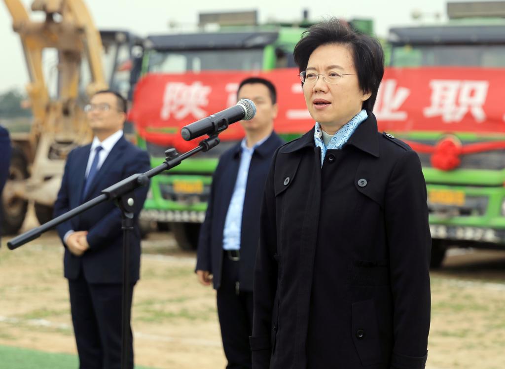 陕西省委教育工委、省教育厅副巡视员梁爱芳向我院全体师生表示热烈的祝贺和诚挚的慰问。她表示,陕西工业职业技术学院办学近70年来,秉承“追求卓越、争创一流”的办学理念,为社会输送了数十万名高素质技术技能人才,为区域经济社会发展作出了积极贡献。希望陕西工院以新校区建设为契机,不断优化专业结构,持续加强内涵建设,深化产教融合校企合作,充分发挥陕西高职教育领头雁、排头兵作用,办出特色、办出水平。