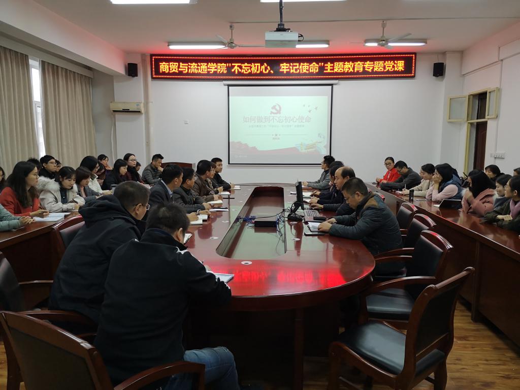 11月25日下午,副院长梅创社以《如何做到“不忘初心、牢记使命”》为题为商贸与流通学院党总支讲授了一堂主题教育专题党课。党课由商贸学院党总支书记陈昊平主持。