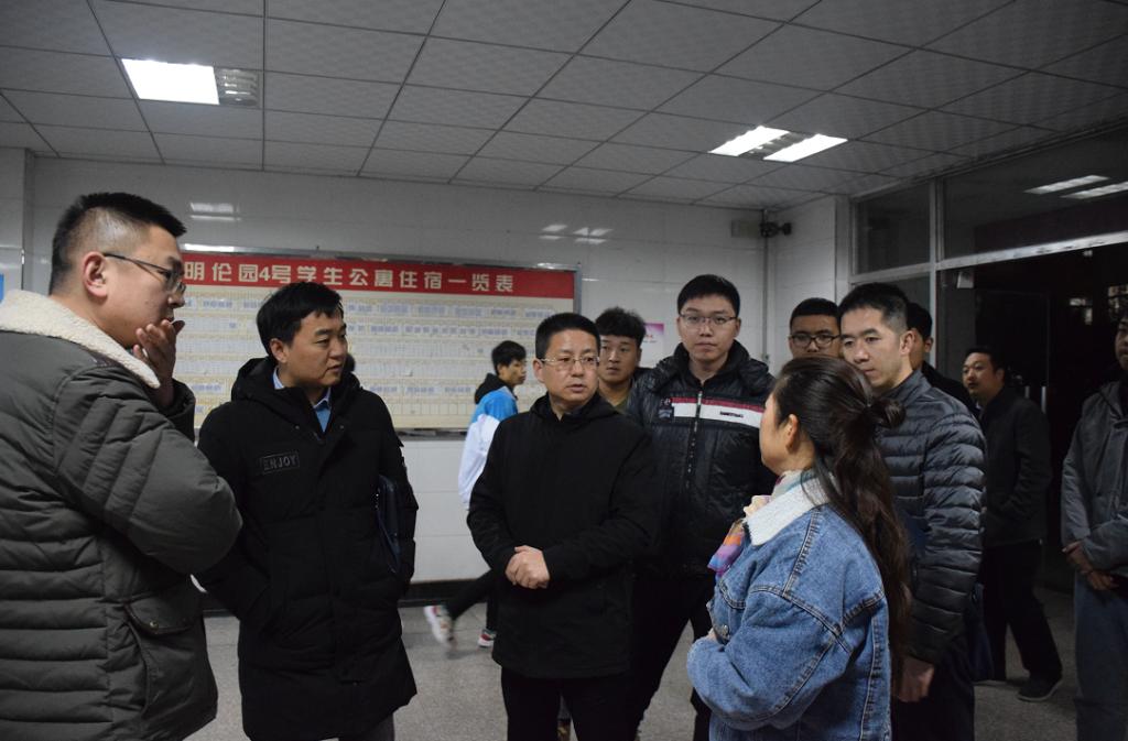 为进一步落实校园稳定安全工作的各项安排,11月27日晚,党委副书记贺天柱带领学工部、保卫处和各二级学院相关人员,对全院学生公寓进行了冬季安全卫生突击检查。