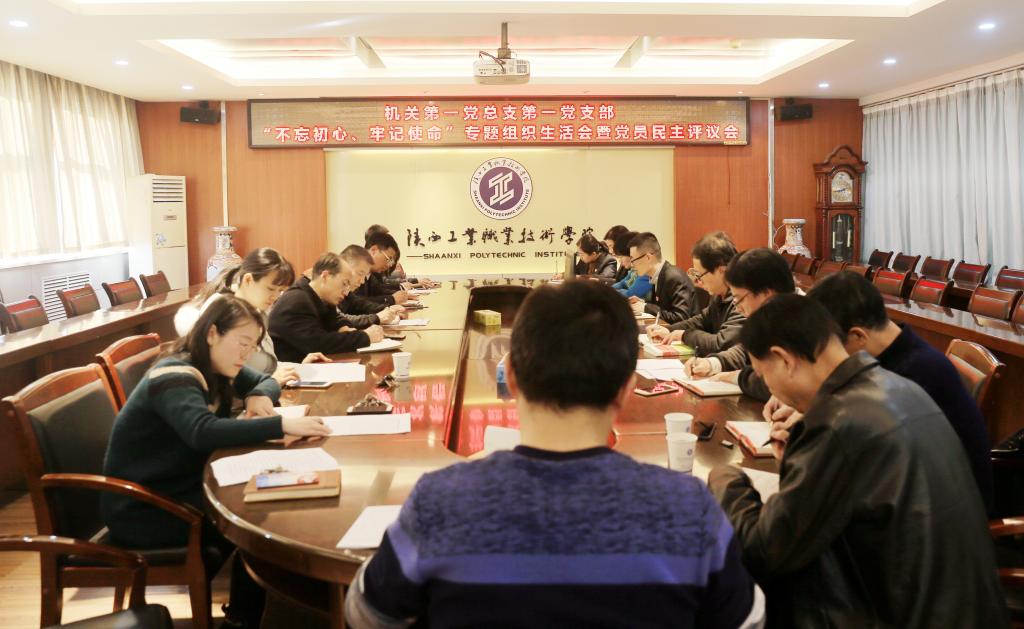 12月10日下午,机关第一党总支第一党支部“不忘初心、牢记使命”专题组织生活会暨党员民主评议会在崇文南楼第一会议室举行。党委书记惠朝阳出席会议并讲话,支部全体党员参加了会议。