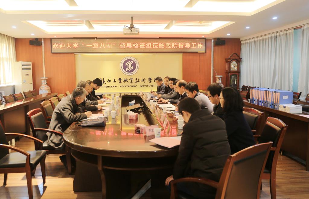 12月18日下午,由西安邮电大学校长范九伦任组长的省政府教育督导委员会“一章八制”专项督导组一行4人来我院,对学院“一章八制”建设情况进行督导检查。汇报会在崇文楼九楼第一会议室举行,院党委副书记田昊、副院长梅创社,党政办公室、工会、科研处、财务处、教务处、学生处、校企合作处等部门负责人参加会议。汇报会由副院长梅创社主持。