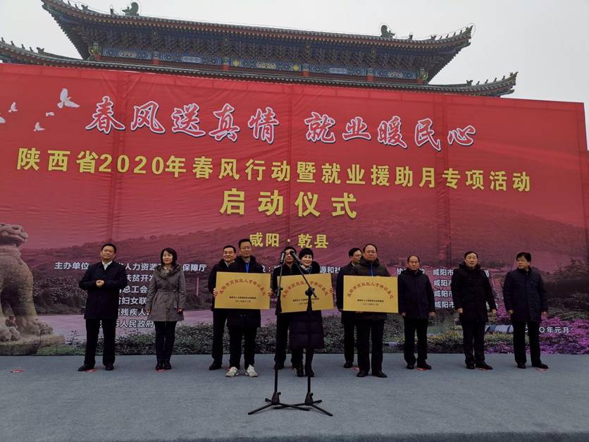 近日,陕西省举办2020年“春风行动”暨就业援助月专项活动启动仪式,我院荣获“咸阳市高技能人才培训基地”称号,副院长刘清参加仪式并领受奖牌。