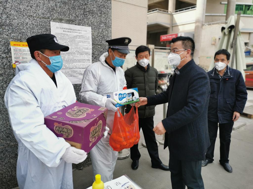 刘永亮同志一行先后来到了监控中心、南北门值班室、离退处、后勤处等疫情防控一线,与正在执勤的党员干部和工作人员亲切交谈,认真巡查了各岗位具体工作运行情况,鼓励大家坚守岗位、凝心聚力共同打赢这场防疫阻击战。党委组织部下拨疫情防控专项党费,为一线基层党员干部和值班人员送去方便面、水果、牛奶等慰问品。