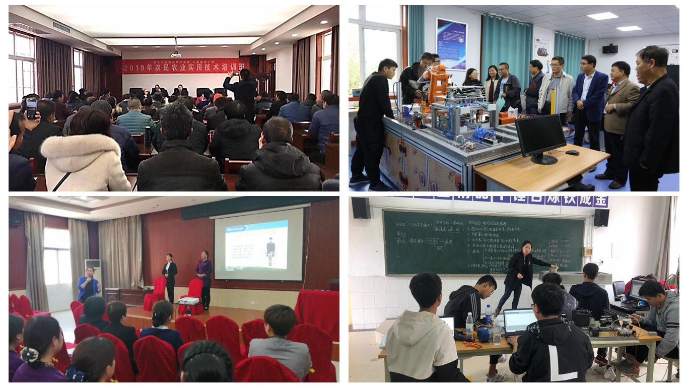 示范基地运行两年来,我院为礼泉县先后开发了20多项不同类别的实用技术培训,共计培训1822人次,其中,对农户开展电商知识培训900余人次,开展养殖种植技能培训150人次,开展“汽修、焊接、动漫、工业机器人、电器安装、3D打印、建筑CAD、酒店管理、技能大赛”等特色产业培训700余人次,其中一部分人员已成为该行业的骨干力量。我院还帮扶礼泉职教中心完成联办“3+2”五年制大专机械电子自动化、电子商务、汽车检测与维修3个专业的建设与人才培养制定,在专业开发与建设、实训室建设、师资队伍建设等方面,开展专业建设咨询与指导等活动。学院针对礼泉县产业发展实际情况,有针对性地立项科技扶贫科研课题6项,课题组多次深入企业开展科技项目调研、咨询、工作对接等活动,并解决了礼泉县伟东锻铸有限公司、阔源汽车服务有限公司、新世纪酒店、京英大酒店等四家中小企业在发展中的各种技术难题,促进了企业快速平稳发展。