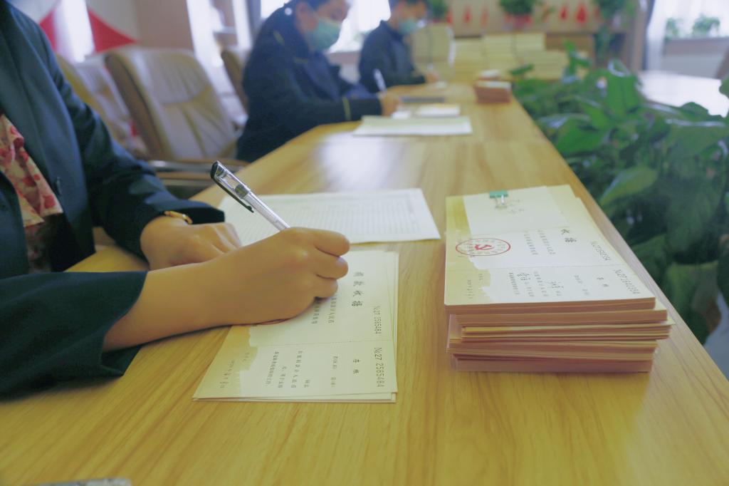 日前,中共中央组织部向我院下发1810名师生党员的党费捐款收据。为更好地发挥党员的先锋模范作用,重温党的初心与使命,提升党建工作的温度和鲜活度,机关一支部开展了“手写党费收据·重温初心使命”活动,支部全体党员同志代表学院,融情于笔端,以手工填写的方式完善党费捐款收据,并由组织部汇总后下发至每位党员同志手中,以此展现工院党员的良好精神风貌和助力打赢抗击疫情阻击战的必胜信心。