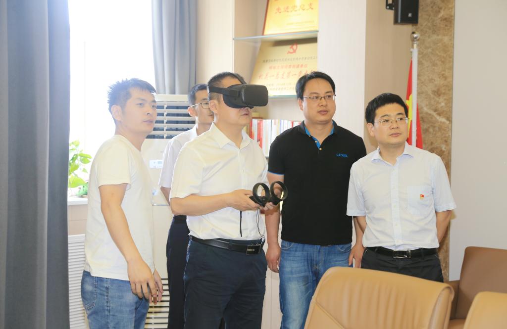 评估验收组体验党员活动室VR设备