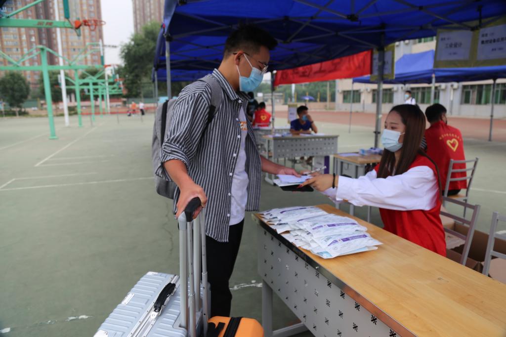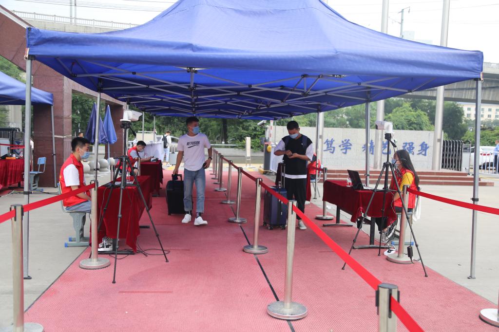 整个复学过程环环相扣,安全有序。所有工作人员和学生志愿者分布在各个岗位,用热情、严谨、周到的服务让返校学生从多环节多站点测温、身份确认、注册报到、签订承诺书、领取防疫物资、办理公寓通行证等方面,感受学院的温暖和关怀。