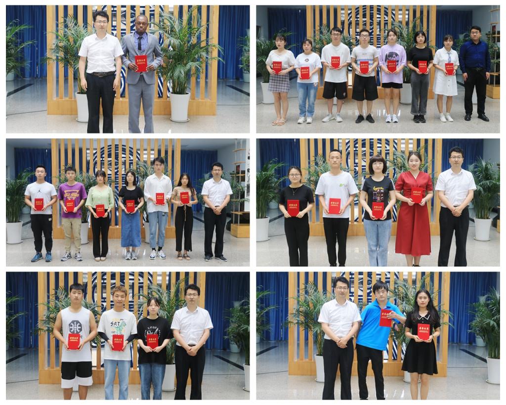 学工部部长郝军、团委书记赵双军为战‘疫’朗诵学生组、“见证·设计之美”获奖师生以及图管会“优秀个人”颁奖