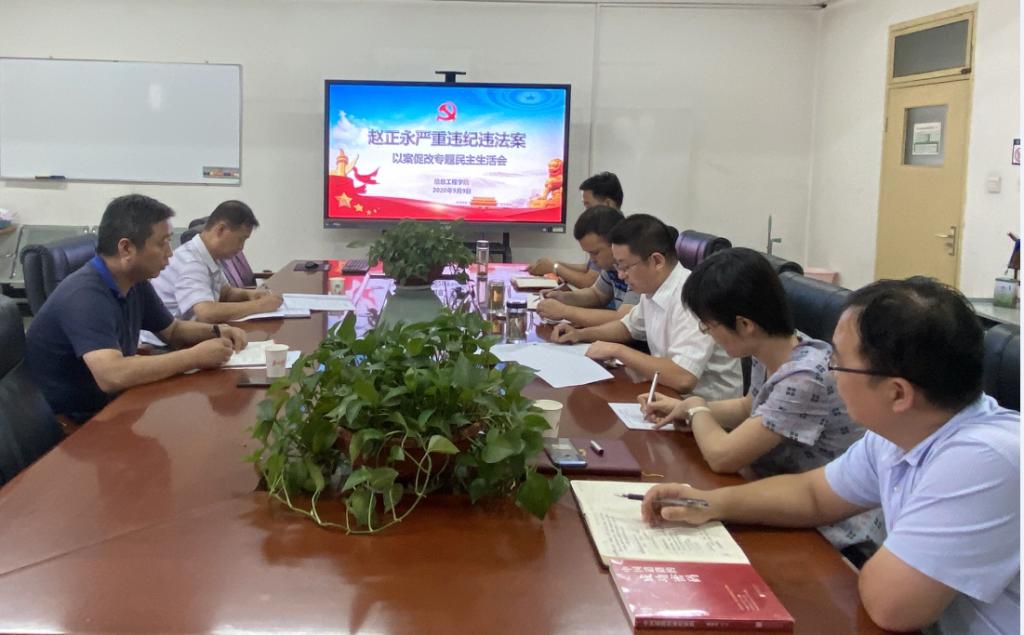 9月9日下午,信息学院党总支在崇文楼A座806召开赵正永严重违纪违法案以案促改专题民主生活会。学院党委副书记贺天柱、人事处处长殷锋社到会督导,信息学院党总支委员参加会议。会议由党总支书记闫军主持。