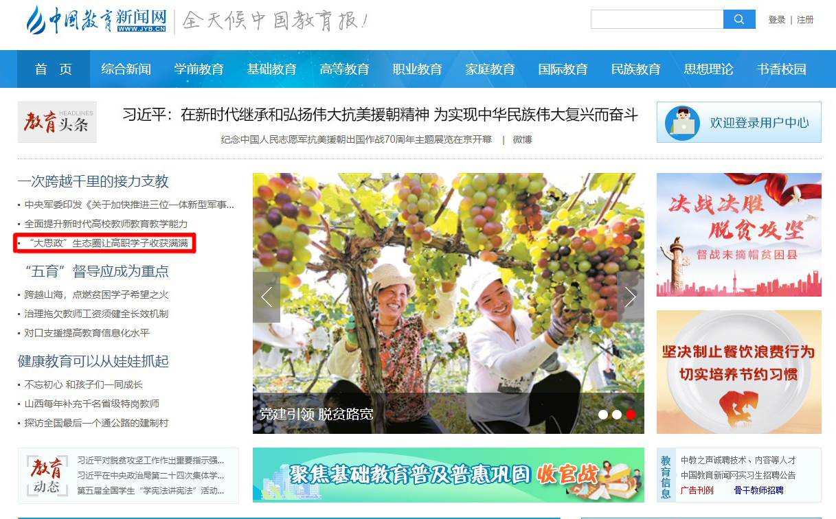 中国教育新闻网头条转载
