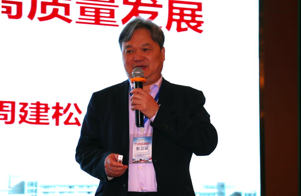 中国高教学会职教分会理事长周建松教授作《“双高”建设引领带动高职教育高质量发展》专题报告
