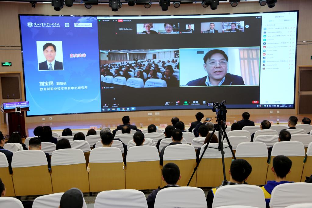 教育部职业技术教育中心研究所副所长刘宝民在致辞中指出,在职业教育面临新冠肺炎疫情等诸多挑战的关键时刻,中国职教界更需要加强全球职业教育的政策对话。他希望我校以“双高”校建设为抓手,进一步加强国际交流合作,提升学校的国际化水平和能力。希望与会外国专家、朋友,继续关心和支持中国职业教育的发展,加强与中国职业院校的交流合作,实现职业教育的合作共赢。