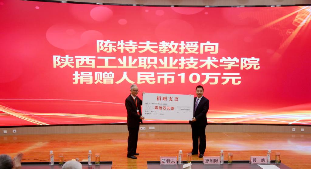 陈特夫教授心系学校,一直关注和支持学校的发展,值此建校70周年之际,向我校捐赠人民币10万元。他表示将一如既往地关心和支持学校发展,依托创办企业的技术研发优势,加强与学校在技术研发、成果推广等方面的深度合作。
