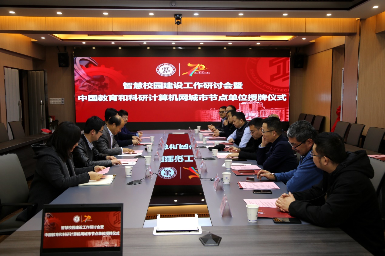 11月20日下午,智慧校园建设工作研讨会暨中国教育和科研计算机网城市节点单位授牌仪式在我院崇文楼九楼第一会议室举行。我院副院长梅创社,中国教育和科研计算机网专家委员会委员、西安交通大学网络信息中心总工李卫,西北工业大学信息化与建设管理处副处长禹亮,西藏民族大学、咸阳师范学院、陕西国际商贸学院、咸阳职业技术学院、陕西能源职业技术学院、陕西财经职业技术学院、陕西邮电职业技术学院等兄弟院校的同仁以及赛尔网络陕西分公司总经理刘明辉等成员参加了授牌仪式。会议由我院信息化与网络安全处处长郝平主持。