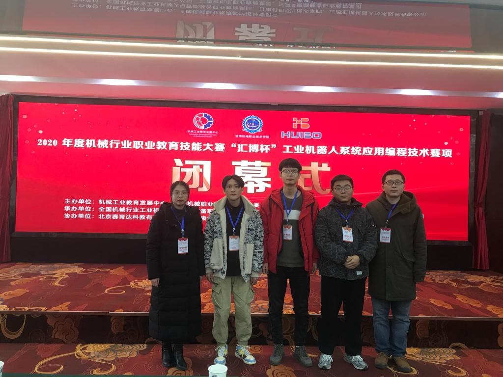 12月1日-7日,2020年机械行业职业教育技能大赛“‘汇博杯’工业机器人系统应用编程技术”赛项在甘肃机电职业技术学院举行,共有来自全国21省份,63所院校的184支代表队参加了本次比赛,是参赛队伍最多的行业赛之一。我院由航空工程学院赵伟博、王谊两位老师指导的杨杰、石小龙、赵桥治三位选手代表参赛。经过紧张激烈的角逐,最终荣获高职组个人赛一等奖两项,三等奖一项,航空学院教师赵伟博、王谊获“优秀指导老师”奖。