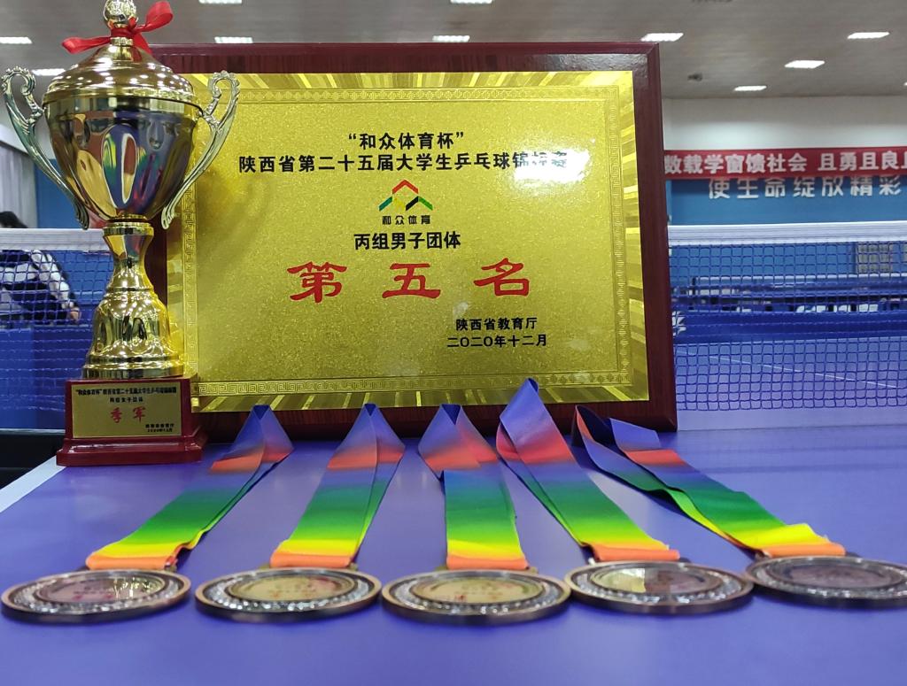 12月8日至13日,由陕西省教育厅主办,陕西省学生体育协会、西安财经大学承办的第二十五届大学生“校长杯”乒乓球锦标赛在西安财经大学举行,全省60余所高校参加了比赛。我校由曹新岗老师领队,张辉、王磊磊老师指导的乒乓球代表队勇敢拼搏,敢打敢拼最终夺得了丙组女子团体第三名,男子团体第五名,女子单打第三名、男子单打第五名、混合双打第五名的好成绩。同时张辉、王磊磊老师获得了优秀教练员称号,丁孜晖、孟紫怡、贺伟博、刘海博获得了优秀运动员称号。这也是近年来我校在大学生乒乓球比赛中获得奖牌数量最多的一次。