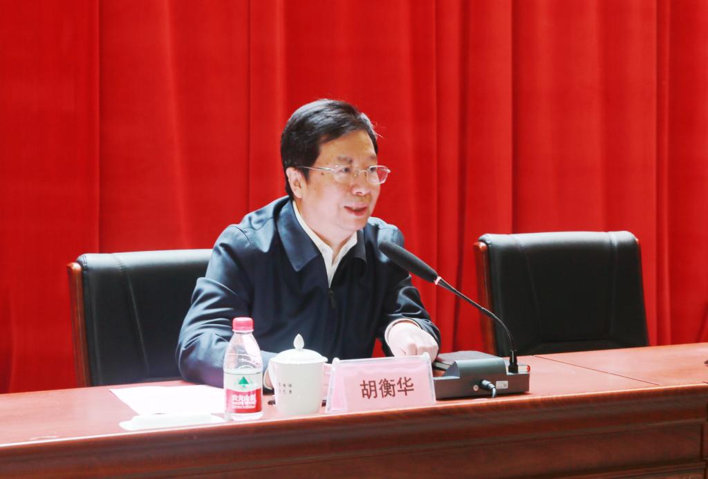 12月17日,省委副书记胡衡华来我校宣讲党的十九届五中全会精神,与师生交流心得体会。省委副秘书长白宗正、省委教育工委书记王建利,以及省委办公厅、省委教育工委相关部门负责同志出席报告会。我校领导班子全体成员、科级以上干部和师生代表500余人参加了会议,会议由我校党委书记惠朝阳主持。