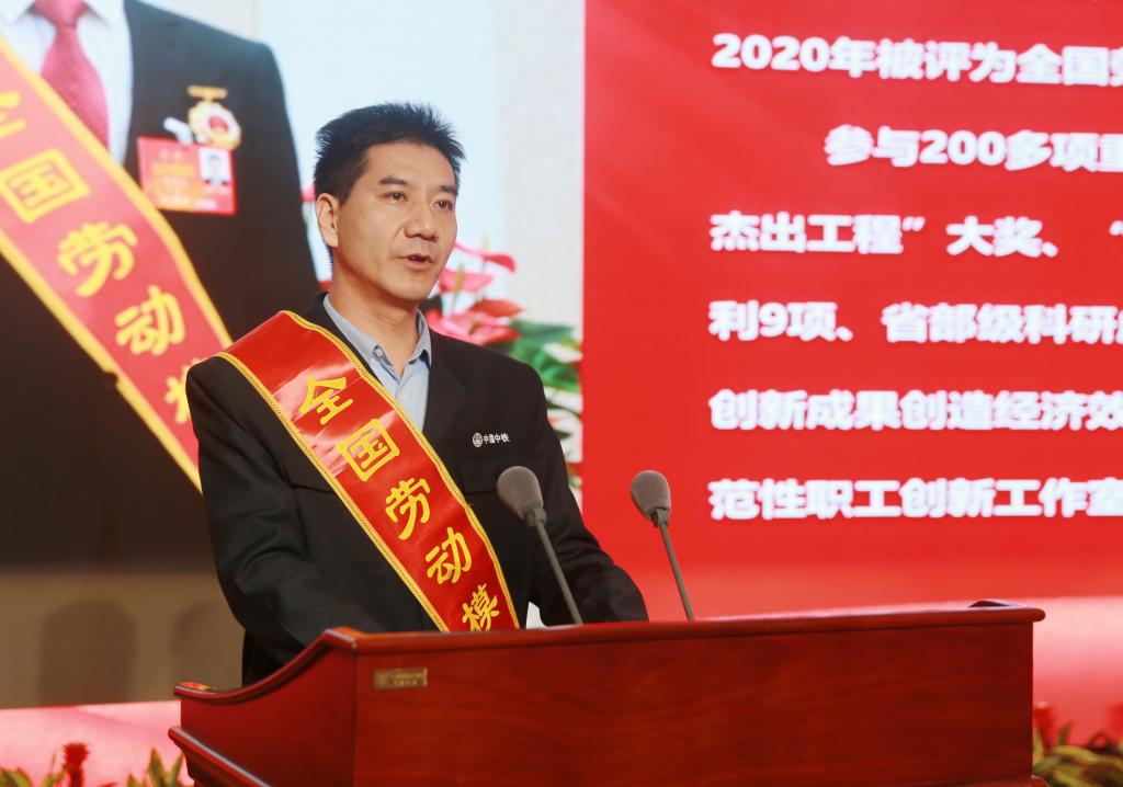 全国劳动模范、全国五一劳动奖章获得者、中铁一局集团城市轨道交通工程有限公司西安地铁指挥部技术负责人梁西军作报告
