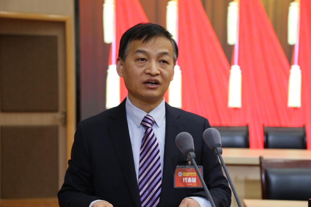 省教科文卫体工会主席徐富权在讲话中充分肯定了学校建设发展所取得的成就,并表示陕西省教科文卫体工会将一如既往的支持陕西工业职业技术学院的各项事业和发展,大力支持学院工会的各项工作。他指出,建校七十年来,学院党委高度重视和支持教代会、工代会工作,采取有力措施不断加强学校民主政治建设,使得民主管理工作更加规范化、制度化、信息化。他希望本次大会选举产生的新一届委员会不断提高政治站位,加强学习,提高使命感和责任感,在推动学院各项事业发展的过程中要有新作为,服务学校发展大局。同时要切实激发广大教职工的智慧和力量,把广大教职工的思想和行动统一到学校中心工作上来;要不断创新服务方式和方法,扎实做好维护教职工各项合法权益的工作。