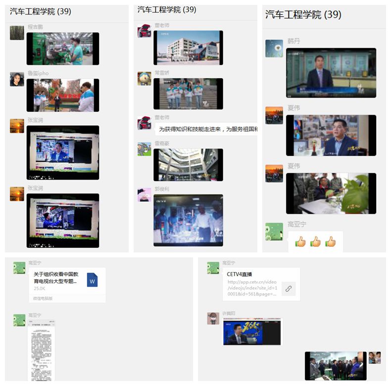 汽车学院、化纺服学院也通过网页链接、易班平台等渠道组织师生进行了线上观看。同时,纪录片讲述的内容也在各党群部门、行政部门中引起了热议,学生处在活动总结中提到:“当前正值‘双高’建设的关键时期,《梦开始的地方》这期节目反映了我校职业教育发展的重要成就,以及在‘双高’建设、职业创业方面的感人故事,展现了新时代共产党员的精神风貌,对于普通党员和学生更是起到了心灵上的震撼作用,为他们树立了楷模形象,给他们前进的目标和奋斗的动力。”图书馆在活动总结中提到:“通过本次云端观看《梦开始的地方》,大家纷纷表示感受到了我院在引领改革、支撑发展过程中取得成就的不易。2020年是极其不平凡的一年,也是陕西工业职业技术学院建校70周年,在工院人共同奋斗的日子里,有顽强不屈的坚守,有不断奋进的担当,更有收获的感动。我们通过奋斗,披荆斩棘,走过了70年,我们还要继续奋斗,创造更加灿烂的辉煌!”