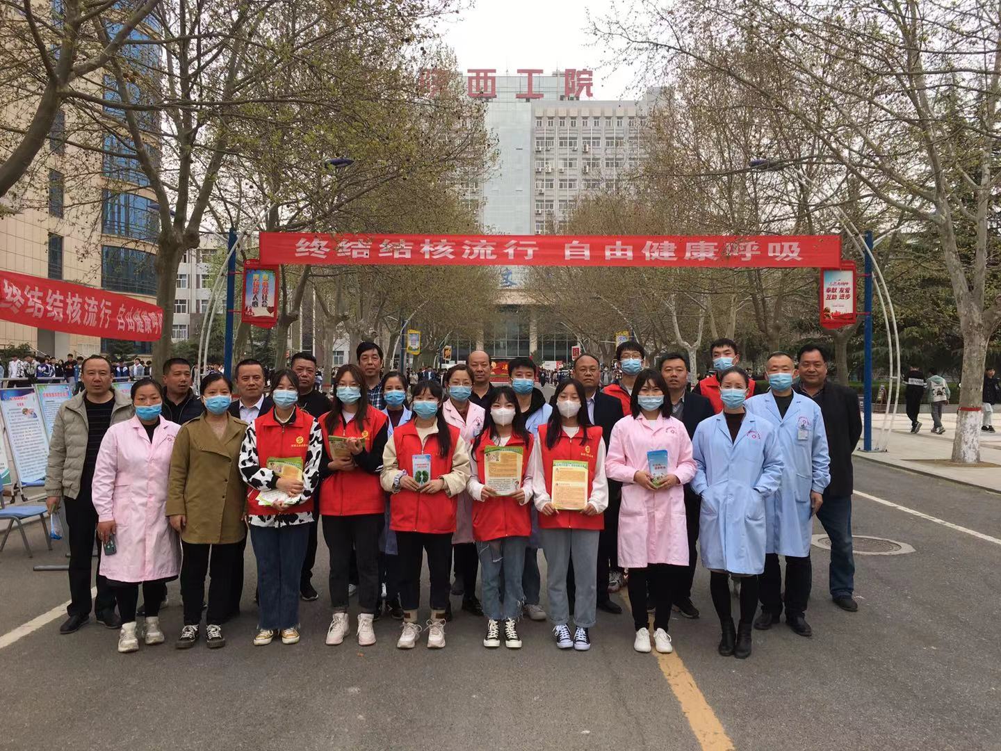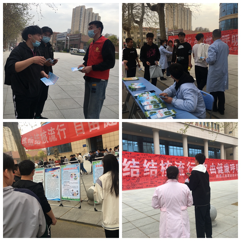 我院副院长刘清及后勤处副处长韩二豹对本次现场宣传活动进行了工作指导,红十字会学生志愿者、后勤处党员志愿者及工作人员、校医院及渭城区文汇防保站工作人员等人共同参与了本次活动。志愿者们及医务工作人员向沿途学生发放宣传资料、宣传手册等三千余份,咨询台前医务工作人员也对同学们咨询的结核病预防及诊治政策等相关问题进行了回答,下课后路过的学生进行了“万人签名”活动。
