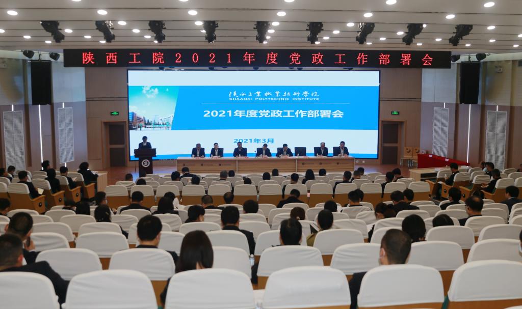 通过对2021年承接的任务以及中省相关文件要求进行条理化、项目化、指标化的系统整理,我校出台了《陕西工业职业技术学院2021年党政工作要点》,将全年工作计划分解成8大方面、32个项目、225个任务。刘永亮校长在对《党政工作要点》进行解读时,梳理了开展党史学习教育、申办本科层次职业学校、实施“提质培优行动计划”等十项重点任务。他还通过坐标构思法,将学校在党建引领、人才培养高地、创新服务平台等十个维度上力争取得的校级、省级、国家级、国际级等各类教育教学成果进行了自“我”画像,帮助大家找准定位,将千头万绪的工作成条、成块、成型,为学校各项事业发展标出了重点,指明了方向。