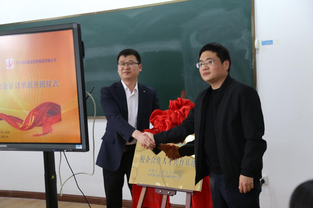 田昊副书记首先代表学院向出席仪式的中天西北集团副总裁黄舍荣一行表示热烈欢迎,在介绍了学院办学历史、办学特色与办学理念以及“双高”建设所面临的重大机遇与发展后,他就发挥校企双方资源互补优势、提升校企深度融合、协同育人和共同发展等方面对订单班提出了希望和要求。接下来,中天西北集团副总裁黄舍荣代表公司对我院长期的支持表示感谢,并对公司概况、校企合作、订单班学生的培养谈了具体的设想,他表示,希望通过双方的共同努力,优势互补、工学结合,为学生提供更好的学习、实践平台,为行业的发展培养出更多、更好的优秀人才,共同把校企合作推向新的高度。企方班主任晏先勇介绍了“中天安全员订单班”培养计划,参会成员共同观看了中天控股集团企业形象片。随后,双方领导为“校企合作人才共育基地”揭牌并签订合作协议,并为学员发放录取通知书。