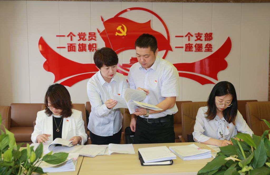 指导组查阅学校党史教育学习资料