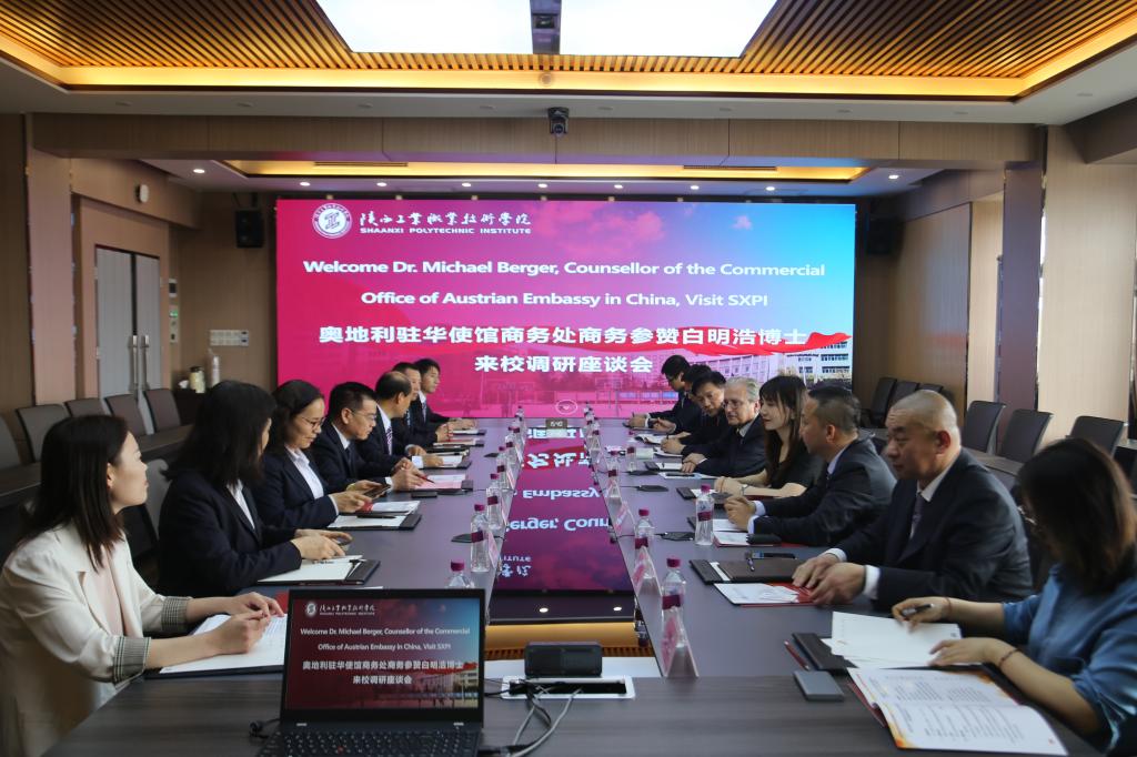 会上,刘永亮院长首先对白明浩参赞一行的到来表示热烈欢迎和衷心感谢,邀请来宾一同观看了我校的专题片,介绍了我院的办学历史、育人理念、办学成果以及目前国际合作办学的情况,并表达了与奥方在职业教育领域进一步开展合作的意愿。白明浩参赞对我院的办学理念和取得的成果表示赞赏,他认为我院校企协同、理实一体的办学模式与奥地利广泛开展的“双元制”人才培养模式高度相似,双方具有良好的合作基础,在职业教育领域有巨大的合作空间和潜力,也希望此次交流能为下一步深入合作打好基础,并预祝合作取得成功。