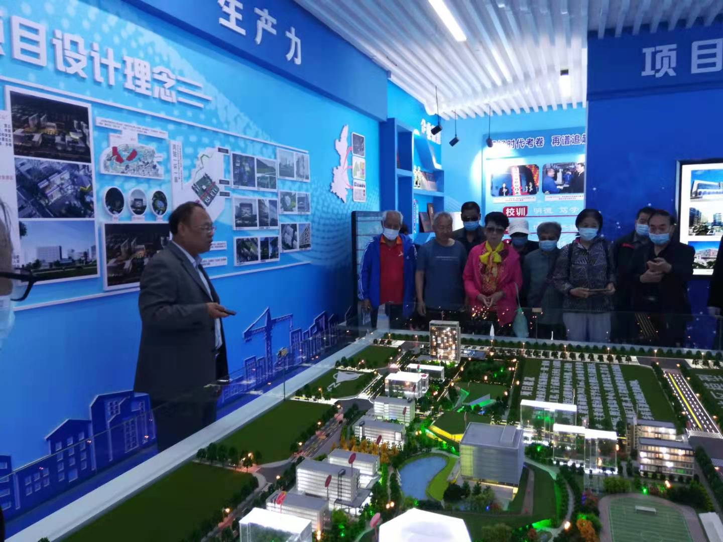 副院长刘清为老同志介绍新校区沙盘