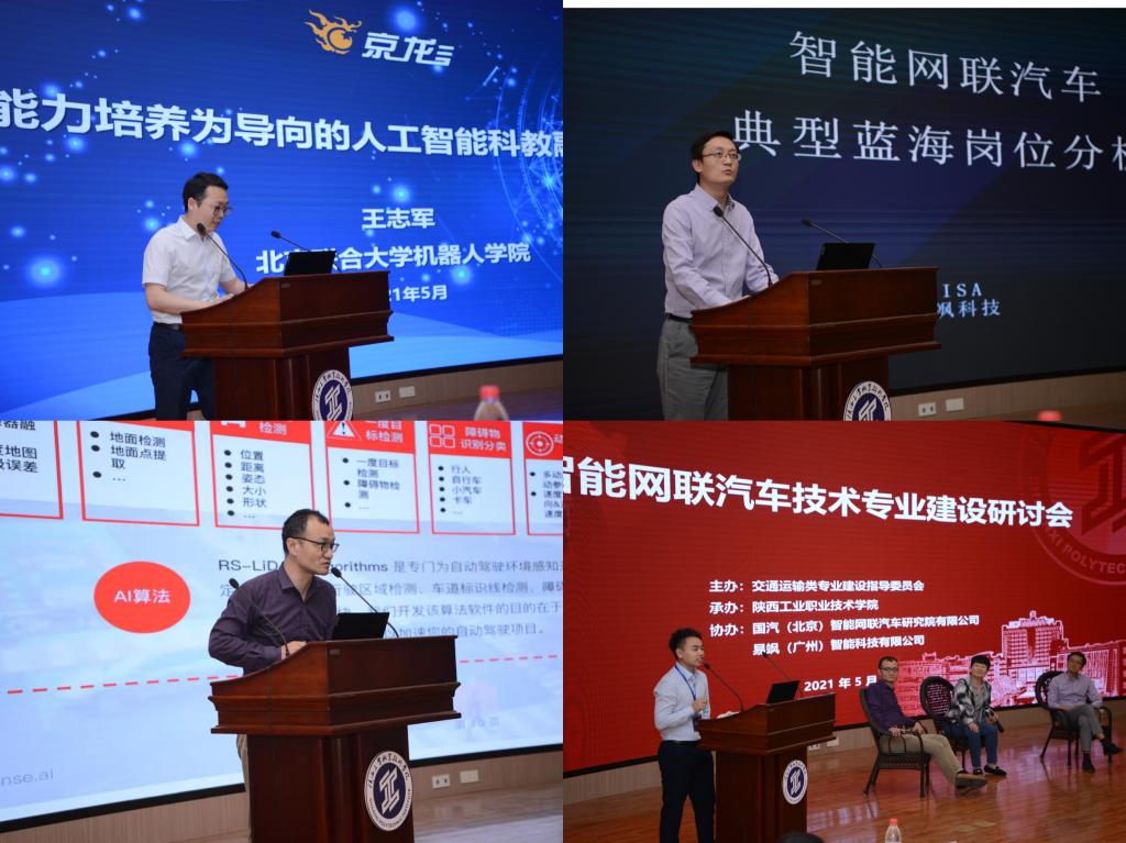 下午,北京联合大学机械自动化学院副院长王志军、全国首个智能网联汽车垂直就业信息平台负责人张燕杰、速腾聚创教育产业生态总经理洪勇、易飒科技联合创始人龚勇分别作了《以能力培养为导向的人工智能科教融合创新平台》、《智能网联汽车领域典型蓝海岗位梳理》、《新汽车人才招聘困境与挑战》、《智能网联汽车技术专业建设规划探讨》交流发言。随后,大会进行了交流答疑活动,期间,各位领导和专家就交流内容展开热烈讨论,对各高校教师提出的相关问题进行了详细解答。为陕西智能网联汽车技术专业建设及人才培养提供了新思路、新方向。