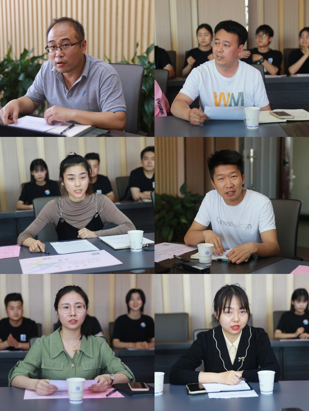 会上,美育部办公室主任毛建芳从本届展演特点、经验感悟、启示与展望这四个方面汇报了我校参加全国大学生艺术展演活动的整体情况。本届展演朗诵类一等奖指导教师柴磊、优秀案例一等奖撰写教师张雅馨、舞蹈二等奖指导教师丁玲分别汇报了各节目从编创、排练直至赴成都参加全国现场展演的整个过程,他们表示此次活动提升了专业素养,磨练了意志,获得了成长,同时也看到了不足,明确了今后的美育工作方向,争取在下一届大艺展中取得更好的成绩。朗诵参演学生赵思妍、张峰、管乐乐等8名同学分享了自己的心得体会,感谢学院领导、老师提供的平台,参加本届全国大艺展活动不仅提升了朗诵专业技巧,更重要的是理解了这部作品的精神内涵,了解党的奋斗历史,缅怀革命先烈,肩负起对延安精神的传承和弘扬的使命,今后将用青春的力量书写奋斗的华章。付胜利部长对此获奖作品的题材选取、作品排练、参加比赛等方面进行了具体情况说明,分享了自己的想法与感想。