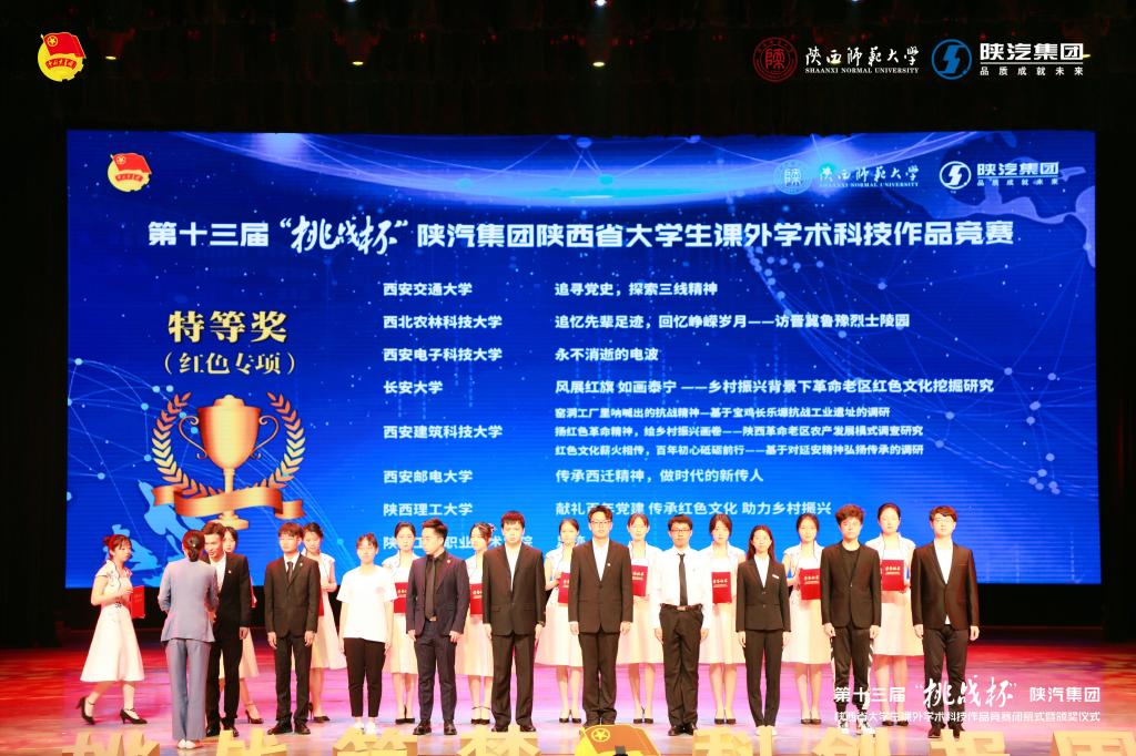 5月22日下午,由团省委、省委教育工委、省科协、省社会科学院、省学联共同主办的第十三届“挑战杯”陕汽集团陕西省大学生课外学术科技作品竞赛在陕西师范大学举行。校团委、西部创新创业研究院有关人员、获奖团队指导教师、成员代表参加了颁奖典礼及闭幕式。