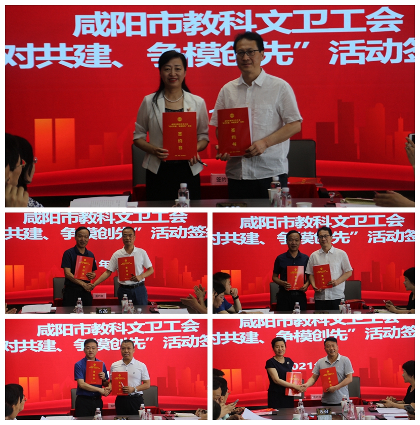 5月31日,咸阳市教科文卫工会“结对共建、争模创先”活动签约仪式在我校崇文楼九楼第一会议室举行。咸阳市总工会党组副书记、常务副主席张静,市教科文卫工会主席杨勇方,我校党委副书记田昊、工会主席张彬出席了启动仪式,来自陕财职院、陕能职院、咸阳职院、市中心医院、市农科院等17家高校、单位的工会主席和职工代表参加活动。