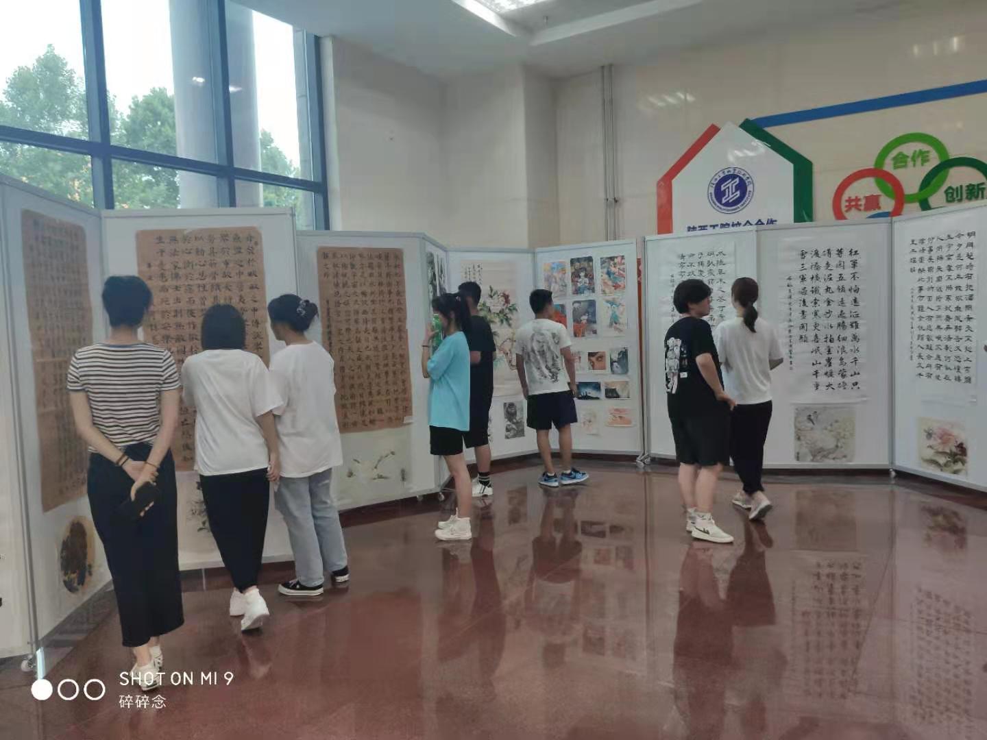 本次活动共收到来自全校学生书画摄影作品百余件,经过严格地评审筛选,80余件优秀作品成功展出。书法工整隽秀,遒劲有力;绘画浓墨重彩、激扬山河;摄影构图完整,角度独特,具有很强的观赏性和感染力,带给人以美的享受。展览现场,前来观赏的书画摄影爱好者络绎不绝,他们在作品前驻足品味,不时地在一起交流心得体会,意犹未尽处便现场挥毫泼墨、以笔会友,共同享受艺术所带来的美好和快乐。